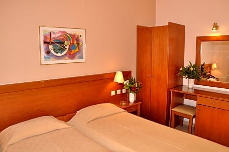 Conveniently located just 1640 feet from the airport and within walking distance to Corfu Town, Hotel Bretagne features free wireless internet access and a friendly, personalized service. Relax in your clean and fully air-conditioned room and enjoy satellite TV. A work desk is also available for your business needs. Enjoy continental breakfast served in Bretagne's breakfast room. Sip a drink in the inviting lobby lounge and catch up with the news or sports on TV. Hotel Bretagne's friendly staff is available 24 hours a day to help you with any inquiries. They can also arrange for you to rent a car or use the business services available. A host of local amenities are just 984 feet away, including restaurants and a mini market. The sea is also within walking distance, making Hotel Bretagne a convenient choice.