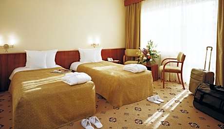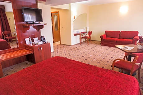 El Hotel Caro de 4 estrellas se construyó en una zona privilegiada, a orillas del lago Tei, y la abundante vegetación que lo rodea lo hace especial. El hotel cuenta con una pista de hielo en el patio, disponible durante la temporada de frío. Con una arquitectura de estilo alemán y cómodas y espaciosas habitaciones, las habitaciones disponen de escritorio, televisión por cable y secador de pelo en los baños privados. Los huéspedes del Caro pueden relajarse en un rincón de la naturaleza urbana en las hamacas del hotel, ver una película al aire libre o una obra de teatro. También pueden alquilar una cesta de picnic y disfrutar del aire libre, o alquilar prismáticos para observar aves en el lago Tei. El restaurante combina la decoración única del hotel con elementos modernos. Se sirve cocina tradicional rumana y platos internacionales, mientras que el acogedor bar del vestíbulo ofrece deliciosas bebidas. Por la noche, les invitamos a descubrir su vino favorito en el bar de vinos "1000 de chipuri". Otras instalaciones incluyen más de 1000 m² de espacio para reuniones, internet de alta velocidad en cada sala, equipo audiovisual disponible, luz natural y acceso al jardín, y amplios terrenos ideales para actividades al aire libre, team building y eventos. El Hotel Caro ofrece un gimnasio deportivo de 730 m², donde los huéspedes pueden relajarse en la sauna húmeda y seca y en las instalaciones para tomar el sol al aire libre. Una piscina de primera clase, un gimnasio y diversas actividades deportivas están disponibles de forma gratuita en todas las habitaciones. El hotel también cuenta con acceso para sillas de ruedas.