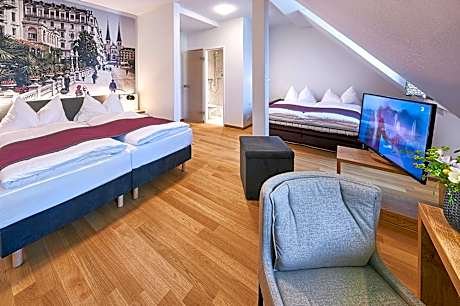 Set right in the heart of the bustling Neustadt quarter in the center of Lucerne, the Hotel Central Luzern enjoys a quiet location in a side alley, with modern rooms and free WiFi. At this 3-star hotel, all of the bright and newly refurbished rooms are nonsmoking and feature parquet floors, a flat-screen TV and a radio. The private bathrooms are equipped with a hairdryer. A rich Swiss buffet breakfast with regional products is included in all rates. Guests can relax in the hotel lounge and enjoy free tea, coffee and water in a comfortable atmosphere. Paid public parking spaces are available in the surroundings. The main train station, the KKL Culture and Convention Center Lucerne, Chapel Bridge and the old town are all reachable within easy walking distance. Zurich Airport can be reached in 50 minutes by car and in 1.5 hours by public transport. License Number(s): KZV-SLU-000067