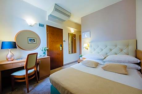 Conveniently located just steps away from the Main Train Station in Zagreb, Hotel Central features air-conditioned rooms with free WiFi. Zagreb's main square is just a 5-minute walk from the hotel as are all the major sights. All rooms come with a work desk, a flat-screen cable TV and a fridge. The private bathroom has a bath or a shower and a hairdryer. A buffet breakfast is served every morning in the hotel restaurant. After a busy day, guests can enjoy a refreshing drink at the lobby bar. The historic Upper Town and the vibrant Ilica Street with numerous shops are just 2 tram stops away. A bus terminal behind the Main Train Station offers quick links to the Avenue Mall and Arena shopping centers, as well as the Arena sports hall. Glavni Kolodvor Tram Stop is right next to the hotel and only 3 tram stops from the Main Bus Station. Zagreb Airport is 9.9 mi from Central Hotel.