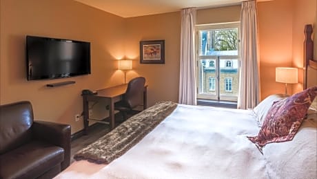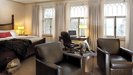 This modern European-style hotel in Quebec City overlooks the St-Lawrence River and is 1 block from the Citadelle de Quebec. A continental breakfast buffet is available at a cost. A flat-screen TV with cable and movie channels is included in every guest room at Hotel Chateau Bellevue. They are furnished with a hardwood desk and leather furniture. Concierge services and valet parking are available, valet parking subject to availability. An electronic wine bar and ice machine are located on site. The Quebec Chateau Bellevue is within 2 minutes' walk of the Terrasse Dufferin, a walkway to the Plains of Abraham. The Musée de la Civilization is less than 0.6 mi away.