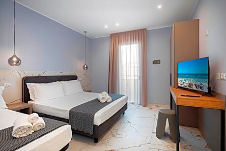 Right on the beach front of Bellaria Igea Marina, Hotel Cola Frontemare offers WiFi and bike rentals. The hotel also has sea-view terrace. A sweet and savory buffet breakfast is served daily. It includes pastries, hot and cold drinks, and cold cuts, while the restaurant specializes in both seafood and meat dishes. All rooms feature air conditioning and a satellite TV. The private bathroom comes with free toiletries and a hairdryer, and the room interiors are in a classic style. Rimini’s beach and clubs are less than 9.3 mi from the hotel, while the small medieval town of Sant’Arcangelo di Romagna is a 20-minute drive away. License Number(s): 099001-AL-00123, it0