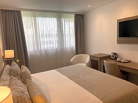 This spacious, air-conditioned room has modern décor and includes a satellite TV and a mini-bar. The private bathroom comes with a hairdryer. Some rooms have a terrace with pool views, available upon request and at an extra cost.