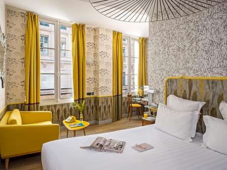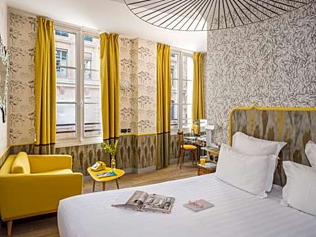 Hôtel Crayon Rouge - Louvre Palais Royal is in the historic center of Paris, right next to Palais Royal. The elegant-style hotel features a wine bar, a 24-hour front desk and a concierge service. It is a 7-minute walk from the Louvre Museum. The air-conditioned rooms and suites at Hôtel Crayon Rouge - Louvre Palais Royal are uniquely decorated with original wallpaper. The private bathroom includes free toiletries and a hairdryer. A continental breakfast is available daily and can be served in the comfort of your room. It includes pastries, fresh fruit and hot drinks. After breakfast, you can relax in the shared lounge, using free WiFi access or reading the newspaper. Other facilities available at the property include luggage storage. The hotel is .6 miles from Tuileries Garden and a 25-minute walk from Notre-Dame Cathedral. The Pompidou Centre is less than a 15-minute walk away.