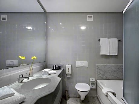 Hotel Damier dates from 1769 and features an elegant historic façade with De Coene interior. It is located on the Grote Markt in Kortrijk and features free Wi-Fi. Our private parking, for a surcharge, is only a 2-minute walk from the accommodations" Each of the 65 guest rooms and the luxe apartment of 150 square yards at Hotel Damier Kortrijk feature a flat-screen TV, and a private bathroom. Some of them feature air conditioning. The bathrooms are all equipped with a shower, bath, and a hairdryer. The Executive category rooms have the possibility for connecting doors and can be equipped with disability-friendly facilities. Guests can enjoy a luxurious breakfast buffet with waiter service. The hotel offers 24-hour reception and a lobby with a fireplace. The on-site restaurant serves contemporary international cuisine for lunch and dinner, using high-quality products. The restaurant also has a heated terrace. At brasserie Damier guests can enjoy meals for both lunch and dinner, local beers, a varied whiskey collection, cocktails and 'Copperhead' gin. In the afternoon, guests can enjoy fresh homemade Belgian pancakes and waffles. Guests can also enjoy the property's signature cocktails at the high-end bar Sprezza. The hotel disposes of 2 banquet rooms and 2 meeting rooms. The Kortrijk Xpo halls are only 1 mi away and Kortrijk-Wevelgem International Airport is within 5 mi away. Damier Hotel is a 5-minute walk from Kortrijk Railway Station. Guests can go cycling in the surrounding area and visit the local museums. The parking facilities that the hotel offers are located a 2-minute walk from the hotel.