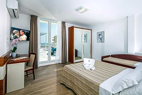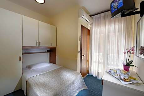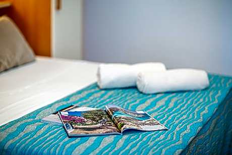 Two connecting rooms with partial sea views.1 DOUBLE ROOM with single bed + 1 SINGLE ROOM with communicating door. An LCD satellite TV and air conditioning are provided. Free WiFi is available.