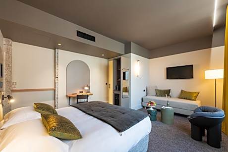 Nos chambres Élégante d'environ 25m2 sont des chambres pouvant accueillir 1 à 3 personnes. Elles disposent d'un lit King size de 71 in ou bien de deux lits twin avec une baignoire. Un lit additionnel est en option. La chambre est équipée de wifi haut débit, d'un mini-bar partiellement offert et d'un coffre fort.