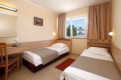 Located about 164 feet from a pebbly and rocky beach, Hotel Delfin is surrounded with lush greenery and offers an outdoor saltwater swimming pool, as well as a sun terrace equipped with sun loungers. Free WiFi is provided in the lobby. The bright rooms all include a telephone and provide a private bathroom fitted with a shower. Some rooms come with a furnished balcony. The hotel's restaurant serves breakfasts, lunches and dinners buffet-style. A selection of vegetarian dishes is available as well. There is also an aperitif bar, as well as a poolside bar where evening entertainment takes place during the summer months. Delfin Hotel's conference hall seats 400. The souvenir shop and massage studio can also be found on site. The lounge area is equipped with satellite TV. Kid's Club and entertainment programs are available for the younger guests. Water sports available on the hotel's Blue-flag beach include water skiing, sailing, pedalos and scuba diving, also available at a surcharge. The town of Poreč, famous for its UNESCO-listed Euphrasian Basilica, is 3.1 mi away. Pula Airport is located at a distance of 35 mi.