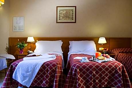Hotel Delle Muse is in the quiet Parioli district of Rome, a 20-minute bus ride from Termini Station. There is free internet access and a restaurant. This family-run hotel offers rooms with 21-inch flat-screen satellite TVs and air conditioning. There is a daily breakfast buffet which can be eaten on the grounds in the summer months. Delle Muse's yard has a large, covered terrace where traditional Italian meals are served for lunch and dinner. The hotel is 1700 ft from Villa Ada park, and a 10-minute drive from the Auditorium Parco della Musica.
