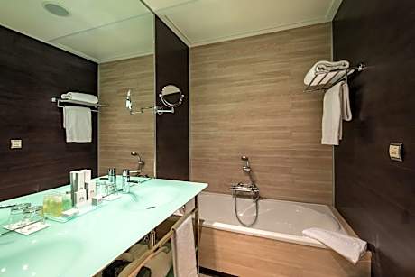 This spacious, modern room includes free Wi-Fi and a plasma-screen TV. The private bathroom has shower. Please note that this room offers 1 double bed or 2 single beds and 3 extra beds. Guests must present ID with proof of age of the children on arrival. If no proof is provided, additional supplements may be charged.