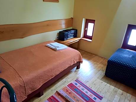 The air-conditioned room with parqueted floor and wooden furnishings features a mini-bar, a TV and a private bathroom with a shower.