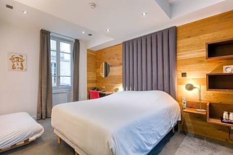 Born from the transformation of an office building, the Hotel du Jeu de Paume is placed in the category of charming hotels. The hotel has rooms with atypical and original decoration while respecting sensational comfort. We offer you a warm hotel in Versailles with a neat decoration, signed by N. Stadler designer. The hotel has a small flowered garden, a cozy and calm atmosphere is present in our establishment so that you have a relaxing stay. Ideally located in Versailles, the Hotel du Jeu de Paume will allow you to visit all the wonders of the city on foot. Thanks to its exceptional location, it is possible to reach the Palace of Versailles in less than 2 min. Our establishment is located in a quiet street but close to rue de Satory which is a very commercial street with many restaurants and other small shops. You can reach Paris from the "" Versailles Rive Gauche "" train station, which is a 5-minute walk from the hotel. " Each room at Hôtel du Jeu de Paume will provide you with a flat-screen TV and cable channels. Featuring a shower, the bathroom also comes with a hairdryer and free toiletries. Tea/coffee facilities are provided in each accommodations and a daily continental breakfast is served in a yurt, located in the hotel. Breakfast is free for children under 3 years old. Lively streets with restaurants and bars are located within walking distance. The hotel is a 5-minute walk from Versailles-Château-Rive Gauche Train Station which provides direct access to the capital.