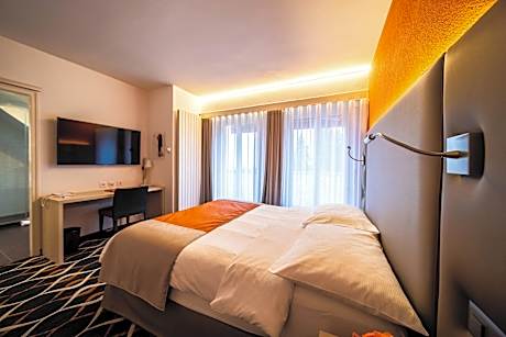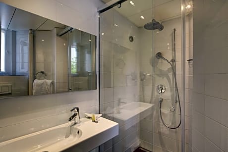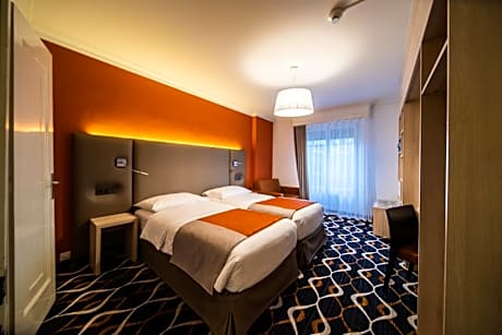 Located opposite the magnificent Barton Park and a few steps from Lake Geneva, the Eden Hotel welcomes you in a warm and authentic atmosphere. This 3-star superior hotel, with a "boutique hotel" feel, offers comfortable and completely renovated rooms, all equipped with individual air conditioning and a high-performance Wi-Fi connection. Caramela restaurant, open Monday to Friday for lunch & dinner, offers seasonal cuisine, entirely homemade with seasonal products, from local production, organic and environmentally friendly. We are committed to an eco-responsible approach and implement concrete actions to reduce its impact on the environment. Since November 2023, we have been certified Silver level of the Ecocook sustainability program. Please note that our hotel is not accessible neither equipped for person with reduced mobility, there is several steps for the access to the hotel with no access ramp and our elevator is not wheelchair friendly. At our hotel, we offer a selection of cozy rooms to ensure a comfortable stay. Most of our rooms can accommodate multiple guests; however, the 'Chambre Double Standard' is designed for single occupancy only, with a maximum capacity of one person.