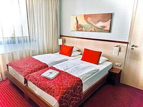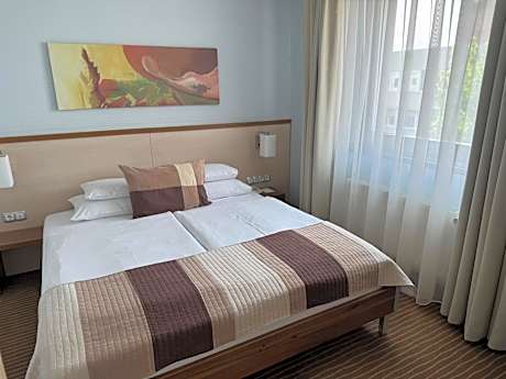 Offering free wired Internet access and free on-site parking, this hotel is centrally situated in Györ. The Árkád Shopping Center is next to the Famulus. All rooms at Hotel Famulus come with satellite TV, air conditioning and a minibar. The bathrooms have hairdryers and slippers. The Podium Restaurant serves lunches and dinners with international dishes. Guests can rent a bike or play racquetball and go bowling.