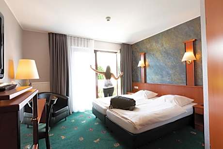 Set on the edge of the picturesque Weser Hills, the country-style Hotel Freihof features a buffet breakfast, a large garden and rental bikes. A sauna and massage facilities are also available. A flat-screen TV, free Wi-Fi and a seating area are offered in the rooms at Hotel Freihof. Each one is classically decorated and includes wooden furnishings, carpeted floors and soft lighting. Hearty regional dishes are served in the elegant restaurant. During warm weather, meals and drinks can also be enjoyed on the sunny garden terrace. Hotel Freihof is located 3.1 mi from the Herford Brewery, and the surrounding countryside is great for hiking and cycling. Younger guests will enjoy the children’s playground. Löhne Train Station is 5 mi away and guests have easy access to the A30 motorway, just 1.2 mi from the hotel.