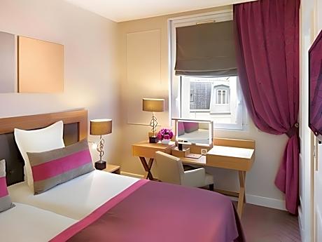 Hôtel Galileo is 460 ft from Avenue des Champs Élysées and a quarter mile from the Arc de Triomphe. It features comfortable and stylish accommodations, and free Wi-Fi access. Each air-conditioned and soundproof room has a simple but classic décor. They come equipped with a TV and have a private marble bathroom. All rooms are serviced by an elevator. Galileo Hôtel serves breakfast in the cozy dining area. After a day exploring guests can relax in one of the 2 lounges, one by the fireplace and the other opens out onto a garden. Bicycle rental is available so guests can ride around Paris visiting famous monuments such as Concorde and Jardin des Tuileries, just over one mile down the road. Metro station George V is 250 yards from Hôtel Galileo with access to the rest of Paris.