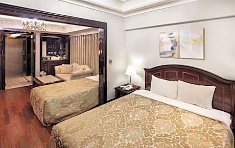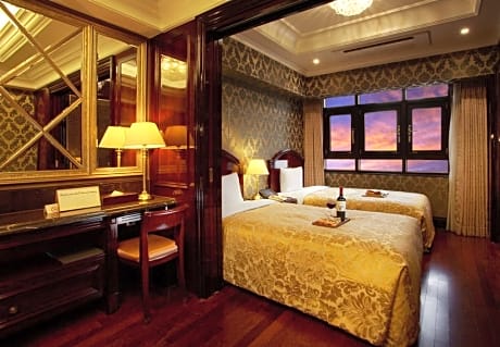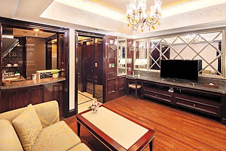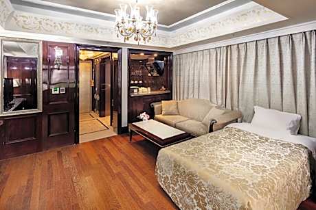 Decorated with antique furnishings, this spacious room has a separate lounge area and a flat-screen TV. Its kitchenette comes with a microwave and electric rice cooker.