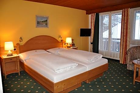 The 125-year-old Hotel Gletschergarten with its magnificent mountain and glacier view is personally run by the 4th and 5th generations with a lot of commitment. All rooms have a newly renovated shower WC or bath WC, TV, WIFI, safe and balcony. Breakfast is included in the room rate, in the evening a fine 4-course menu is served on request. The Hotel Gletschergarten is ideally located at the end of the village near the church and the local history museum, the bus stop is right next to the hotel. All mountain railways can be reached comfortably and in no time with the free local bus. For a fee, guests can be picked up from Grindelwald railway station. In winter the cozy lounge with open fire place invites you to linger. Coin laundry in the house. Reduced admission to the Grindelwald sports center. Ticket and ski pass sales at the reception. There are a small wellness area with sauna and steam bath available.