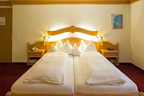 The hotel is located in the heart of Grindelwald, 5 minutes from the train station. The gondola up to the slopes, the ski school and the mountaineering office are also located close to Grindelwalderhof. The village center, where shops and restaurants can be found, is a walking distance away. The hotel’s rooms and public areas are decorated in a traditional Swiss style and provide a cozy and relaxing atmosphere. The hotel provides a buffet breakfast. Guests can also enjoy relaxing times spent in the hotel's sauna or on the terrace enjoying the mountain scenery. the bus stop is right in front and that a supermarket is in the same building.