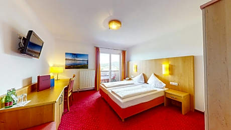 The double room features a wardrobe, a safe deposit box, a balcony with garden views as well as a private bathroom boasting a shower. The unit has 1 bed.