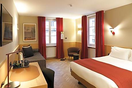 El Hotel Hannong se encuentra en el corazón de Estrasburgo, a solo 5 minutos a pie de la estación de tren TGV, del barrio de Petite France y de la Catedral. Ofrece wifi gratuita. Las habitaciones del Hannong disponen de aire acondicionado y están insonorizadas. Están equipadas con suelos de madera, muebles de diseño europeo, TV vía satélite y baño privado con bañera o ducha. El desayuno bufé se sirve todas las mañanas en el salón del Hannong. Incluye bebidas calientes, pan artesanal y bollería francesa, productos locales, mermeladas y zumos. Los huéspedes pueden disfrutar de una copa en la vinoteca, situada en el salón con techo de cristal o en la amplia terraza. El Hotel Hannong está a solo 100 metros de la estación central de tranvía, Place de l'Homme de Fer. La estación de tren de Estrasburgo está a 9 minutos a pie.