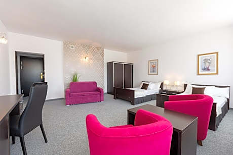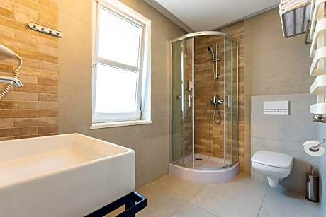 The triple room provides a mini-bar, a safe deposit box, as well as a private bathroom featuring a walk-in shower and a hairdryer. This triple room features a carpeted floor, heating and a flat-screen TV with cable channels. The unit offers 3 beds.