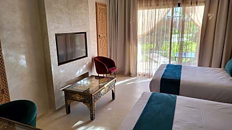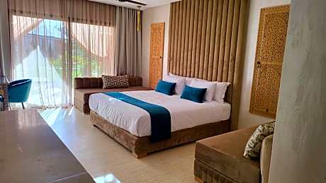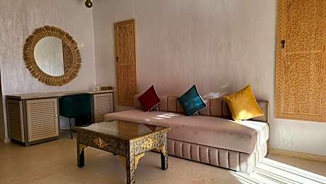 Featuring garden views, Hôtel Jardins de lina et lea in Marrakesh provides accommodations and a garden. Private parking is available on site at this recently renovated property. The guest house features a restaurant serving African cuisine, as well as free Wifi throughout the property. The guest house will provide guests with air-conditioned units with a desk, a safety deposit box, a flat-screen TV, a terrace, and a private bathroom with a bidet. Rooms have a pool with a view featuring pool views. The rooms are equipped with heating facilities. A selection of options including local specialities, fresh pastries, and fruit are available for breakfast, and breakfast in the room is also available. There is a coffee shop, bar, and lounge. Menara Gardens is 8 miles from the guest house, while Djemaa El Fna is 8 miles away. Marrakech-Menara Airport is 6.8 miles from the property, and the property offers a paid airport shuttle service.