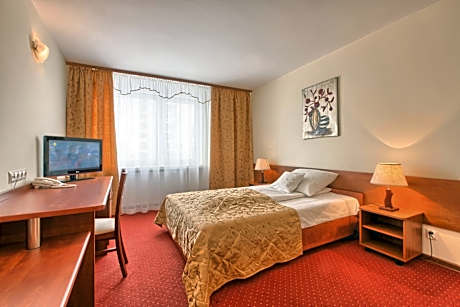 The 3-star Hotel Jubilat is located in the picturesque, Renaissance town of Zamość which features the UNESCO listed Old Town. It offers accommodations in spacious rooms with free Wi-Fi. Carpeted rooms at Jubilat come with a TV with satellite channels, a wardrobe and a bathroom fitted with a shower and a hairdryer. Most rooms are air-conditioned and some feature a refrigerator. The hotel restaurant serves buffet breakfast every morning and it specializes in Polish and European cuisine. There also is a bar where guests can relax with a drink or coffee. Guests can use a computer with internet access in the lobby. The hotel features a fitness center and a sauna that can be used at a surcharge. Further services available in the hotel’s building include a chemist’s and games arcade. Zamość Train Station is 1.4 mi away and the Old Town is 1.2 mi from Hotel Jubilat.