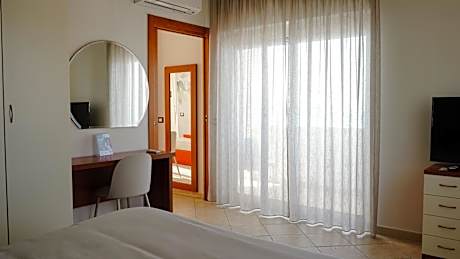 Air-conditioned room with satellite TV and private bathroom.