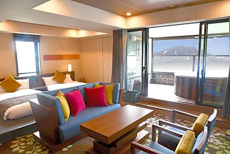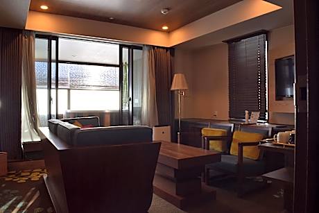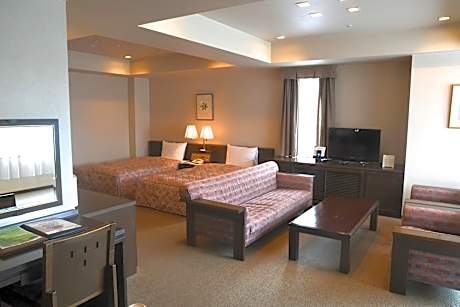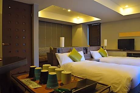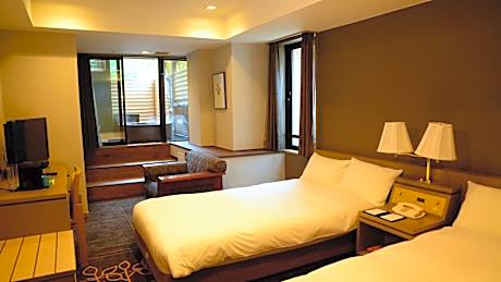 Features Western-style beds and a tatami (woven-straw) seating area. This air-conditioned room features a TV, safety deposit box and an private bathroom. A kitchenette with a fridge, electric kettle and a sink are included. Japanese Yukata robes and slippers are provided for all guests.