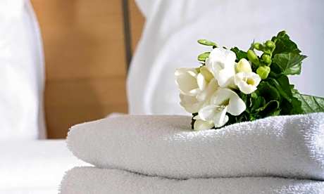 - Las sábanas y toallas se lavan a una temperatura mínima de 60 °C/140 °F.