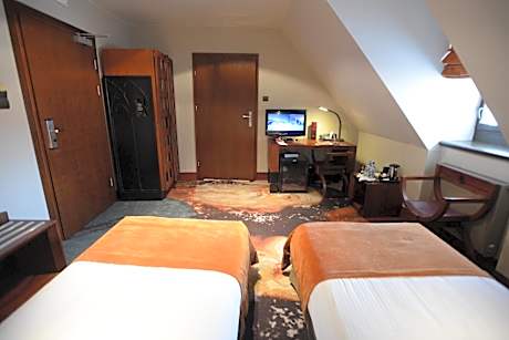 This single room features am electric kettle, a bathrobe and satellite TV. Located in the Baroque east wing, if features décor corresponding to the historical architecture of the property. A standard single bed with dimensions of 90 x 200. The style and interior design of the rooms refers to the historical architecture of the building. An excellent choice for business travelers.