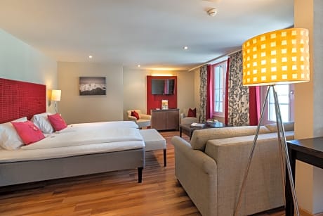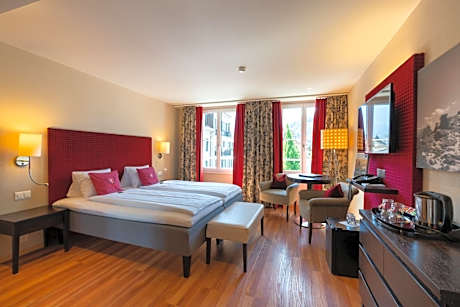 El tradicional Hotel Krebs se encuentra en el centro de Interlaken, cerca de la estación de tren oeste. El vestíbulo cuenta con una terminal de internet y conexión inalámbrica a internet gratuita. Todas las habitaciones están amuebladas de forma moderna y una suite junior está diseñada especialmente para personas con movilidad reducida. El restaurante sirve especialidades suizas y desde la terraza se puede disfrutar de magníficas vistas a las montañas del Oberland bernés. La media pensión incluye una cena de 3 platos. Gracias a su céntrica ubicación, se puede llegar fácilmente a pie a todas las atracciones desde el Hotel Krebs Interlaken. También es un punto de partida ideal para excursiones a las montañas, los lagos y las ciudades de los alrededores.