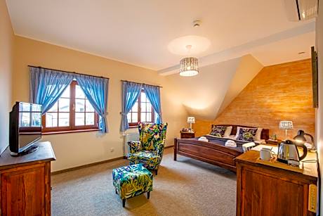 Located in Małe Pułkowo, 6.3 miles from Golub-Dobrzyń Castle, Hotel Kuźnia Smaków provides accommodations with a garden, free private parking, a terrace and a restaurant. With a bar, the 3-star hotel has air-conditioned rooms with free WiFi, each with a private bathroom. The property has room service and a 24-hour front desk for guests. At the hotel, each room has a desk. Guest rooms in Hotel Kuźnia Smaków are equipped with a flat-screen TV and free toiletries. A buffet breakfast is available at the accommodation. Hotel Kuźnia Smaków has a playground. Guests at the hotel will be able to enjoy activities in and around Małe Pułkowo, like cycling. Atrium Copernicus Shopping Center is 22 miles from Hotel Kuźnia Smaków, while Toruń Wschodni Railway Station is 22 miles away. Bydgoszcz Ignacy Jan Paderewski Airport is 52 miles from the property.