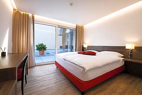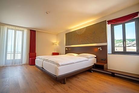 The “Meridiana” offers the charm of a historic Swiss-Italian Ticinese house with walls from the Middle Ages blended with modern architecture and facilities. Most of the rooms and the large terrace offer a direct view to the lake. Make use of the wellness and fitness facilities including an indoor swimming pool, a sauna, steam baths, a whirlpool and a bike rental. Relax in the reading room in a 13th-century tower with fireplace and enjoy the cozy atmosphere in the breakfast room with its rustic courtyard. Around the hotel you find a charming village with many cozy "Ristoranti", shops and a harbor. Covered parking lots are available in the immediate vicinity.