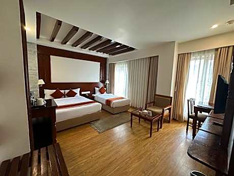 Great care is taken to ensure guests experience comfort through top-notch services and amenities. Remain linked during your visit by utilizing the complimentary internet access available. Prior to your check-in date, you can arrange airport transportation services, guaranteeing a seamless and efficient experience for both arrival and departure. Discovering Pokhara becomes even more accessible through the car hire and shuttle amenities provided at the hotel. The hotel offers complimentary parking for guests who arrive with their own mode of transport. Effortlessly plan your daily activities and travel requirements with concierge service, express check-in or check-out, luggage storage and safety deposit boxes provided by the front desk services.Securing passes to the city's top attractions is simple with the hotel's ticket service and tours. For extended visits or whenever required, the laundromat, dry cleaning service and laundry service ensures your preferred travel garments remain clean and accessible. During leisurely days and evenings, in-room amenities such as 24-hour room service, room service and daily housekeeping enable you to maximize your stay in the room. The hotel is completely smoke-free.In limited designated zones, smoking is exclusively permitted. Crafted for coziness, every guestroom provides an array of features, guaranteeing a tranquil night's sleep while maintaining the level of comfort.For a more enjoyable stay, select rooms at hotel are equipped with blackout curtains and air conditioning. At Landmark Pokhara, a selection of rooms can be found that showcase unique design elements such as a balcony or terrace.For certain chosen rooms, guests can enjoy in-room amusement like television and cable TV as a part of their stay.Rest assured that your hydration needs will be met, as some guestrooms are equipped with a coffee or tea maker, bottled water and mini bar. Landmark Pokhara offers a hair dryer, toiletries and bathrobes in the restrooms of specific accommodations. Each morning at Landmark Pokhara, a scrumptious, homemade breakfast kick-starts the day. Begin your holiday mornings right with your essential cup of coffee, offered daily at the cafe on-site. During your visit, indulge in a range of delightful culinary choices at hotel to enhance your experience. Concerned about your dining preferences? Fret not! Landmark Pokhara offers an assortment of culinary varieties featuring kosher choices, catering to all tastes.Enjoy an entertaining evening alongside your fellow travelers at hotel's very own bar and nightclub. For those with discerning taste buds, having an on-site BBQ facilities and shared kitchen at your disposal will undoubtedly be appreciated. Indulge in the numerous pursuits available at Landmark Pokhara. Treat and spoil yourself by stopping at massage and spa for a memorable experience.Begin your holiday perfectly by taking a plunge into the swimming pool.