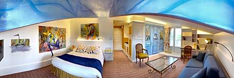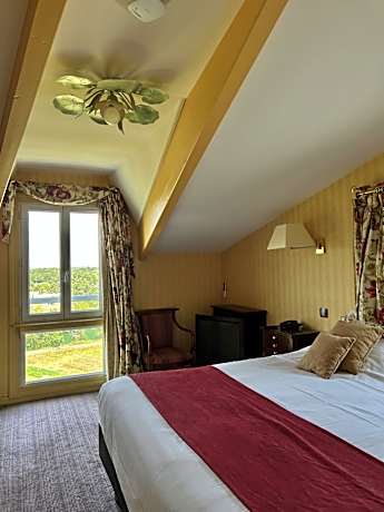 The Château de L'Yeuse is located 1.6 mi from Cognac, near the banks of the River Charente. It offers classic accommodations and a sauna, spa, Turkish bath and outdoor swimming pool. Breakfast includes homemade and organic produce. All guest rooms offer views of the countryside and have satellite TV and Wi-Fi access. The hotel has a large terrace with panoramic views of the Charente countryside, where guests can eat and relax with a drink from the bar. The Yeuse’s restaurant serves gourmet cuisine and offers a variety of wines, served in one of the Château’s large dining rooms or on the terrace. The hotel’s spa has a hot tub, sauna and offers massage therapy. Guests of the Yeuse can enjoy hiking and cycling nearby and travel the 4.3 mi to Cognac Golf Club.