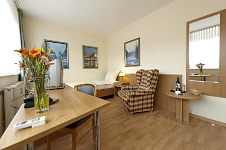 Located steps away from Münster’s main railway station, a 10-minute walk from the city center sights and the congress center, this hotel offers spacious rooms with all modern facilities. Ranging from 79 ft² to 89 ft² in size, the rooms in the Hotel Marco Polo provide a comfortable living or working environment. All rooms feature cable TV, telephone, a refrigerator (also used as a mini-bar) and free wireless internet access. The stylish rooms are individually furnished on different theme cities, such as Madrid, New York Cairo, Rome, Cologne and Buenos Aires. Wake up to a delicious buffet breakfast each morning. Being so close to the railway station, the hotel offers guests ideal public transport connections. Münster Osnabrück Airport is just a 30-minute bus journey away. Guests with cars enjoy low-cost parking directly opposite the hotel, and easy access to the A1 motorway.