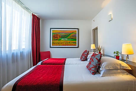 Mercure Villefranche is 200 metres from the centre of Villefrance-sur-Saône and the train station. It offers a lap pool, a terrace with parasols and free Wi-Fi access is available throughout the hotel All accommodation types at Mercure Villefranche are serviced by a lift and feature air conditioning, a flat-screen TV with cable channels and wooden floors. A private bathroom is provided and interconnecting rooms are available for families and groups of friends. A full buffet breakfast can be enjoyed every morning and guests can try bistronomic cuisine at l'Epicerie, the hotel’s restaurant. Breakfast is free for children aged 3 years old or younger and it can be enjoyed at a reduced rate by children aged between 4 and 12 years old. Cocktails are served at the bar or on the terrace. Located in the Beaujolais region, this property is a 5-minute walk from Notre-Dame des Marais Cathedral. Private parking is available on site at an extra cost.