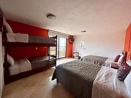 This quadruple room features parquet floors, a flat-screen TV with streaming services and a terrace. The unit has 3 beds.