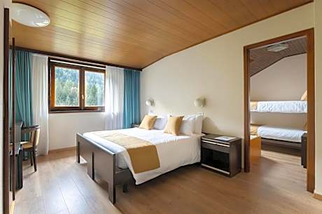 Well connected to the Pontedilegno-Tonale Ski area, Hotel Mirella is a 5-minute walk from Ponte di Legno center. It offers a free indoor swiiming pool and hot tub. It also offer extra services on payment like wellnes center, sauna and steam bath. Rooms at the Mirella Hotel are quiet and spacious with Wi-Fi access. Some have balconies with panoramic views over the mountains and Castel Poggio. Guests can also enjoy massages on payment in the massages area. The Mirella has a bar and a restaurant with great views, serving local dishes. There are busses on payment for ski elevators to the Pontedilegno-Tonale Ski area area, the stop is right in front of the hotel. "Ben collegato al comprensorio sciistico di Pontedilegno-Tonale, l'Hotel Mirella dista 5 minuti a piedi dal centro di Ponte di Legno. Offre una piscina coperta e una vasca idromassaggio gratuite. Offre anche servizi extra a pagamento come centro benessere, sauna e bagno turco. Le camere dell'Hotel Mirella sono tranquille e spaziose e dispongono di connessione Wi-Fi. Alcune dispongono di balcone con vista panoramica sulle montagne e su Castel Poggio. Gli ospiti possono anche godere di massaggi a pagamento nell'area massaggi. Il Mirella dispone di un bar e di un ristorante con splendida vista, che serve piatti locali. Ci sono autobus a pagamento per gli impianti di risalita del comprensorio sciistico Pontedilegno-Tonale, la cui fermata si trova proprio di fronte all'hotel".