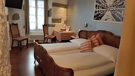 This 3-star Murtenhof & Krone hotel in a Medieval patrician residence in the old town of Murten features a terrace with a wonderful view of Lake Murten. The hotel is only a 5-minute walk from the train station and is located at the entrance to the old town, directly beside the castle. There are 2 electric charging stations in the garage. The Murtenhof features refined cuisine, a big choice of regional wines and individually decorated rooms and suites.