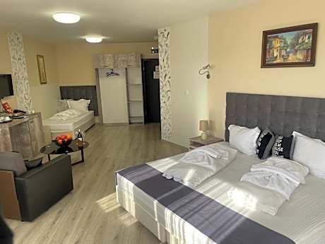 Offering a seasonal outdoor pool, Hotel Ostrova is located in Plovdiv. Guests can enjoy a meal in the on-site restaurant or relax at the property garden. There are also a sauna at guests disposal and a children's playground for the little ones. Every room at this hotel is air conditioned and has a flat-screen TV. Some units include a seating area where you can relax. Some rooms have views of the pool or garden. The rooms are equipped with a private bathroom. Shuttle services can be arranged upon request and at a surcharge. Massage services are also available at a surcharge. Roman Theater Plovdiv is a 16-minute drive away from Hotel Ostrova and International Fair Plovdiv is a 6-minute drive away. Mall Plovdiv is reachable within an 8-minute drive.