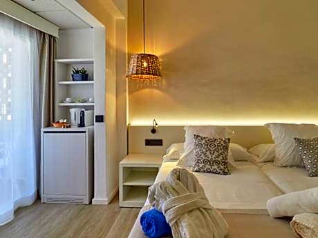 This pleasant hotel is located on Paguera’s seafront Boulevard in the center of the resort. It offers air-conditioned rooms with a balcony, most with sea views and some has terrace, 66 feet from Palmyra Beach. The Paguera Treff’s spacious rooms feature Mediterranean-style decor and all come with satellite TV, a safe and a full private bathroom. Free Wi-Fi is available throughout. The hotel serves a buffet breakfast and has a restaurant offering regional cuisine. Starters and desserts are served buffet-style, while main dishes are à la carte. There is also a bar area and terrace. You can hire a car or bicycle, or going snorkeling and diving at the beach. The Andratx Golf Resort is 10 minutes’ drive away and you can reach lively Magaluf by car in 12 minutes. Paguera Treff is located 20 minutes’ drive from Palma and its airport.
