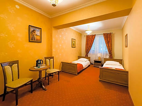 Hotel Pałac Akropol is a uniquely designed hotel located in a quiet area, only 3.7 mi from the center of Lublin. It offers stylish rooms with free Wi-Fi and elegant bathroom facilities. The property features a beautiful, furnished terrace with a wonderful garden view. The interiors are inspired by the ancient world architecture style and include modern elements. Each room offers a private bathroom and satellite TV. There is a restaurant serving a breakfast buffet every morning. After lunch or dinner, guests can enjoy picturesque hotel's surroundings, with not only garden lanes but also a nearby forest. Hotel Pałac Akropol has free parking and a 24-hour front desk service. The Lublin Botanical Garden is 1.2 mi away.