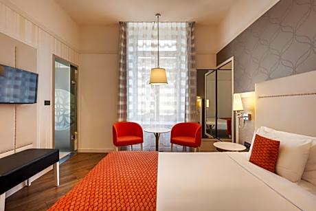 This stylish boutique hotel with distinctive elegance is ideally located in the heart of Budapest, only a few steps from the Danube bank, the Parliament and the St. Stephen’s Basilica. All modernly and individually designed rooms of the Ikonik Parlament provide flat-screen TVs, air conditioning and spacious bathrooms. Wired and wireless internet access in the rooms is free of charge. Guests can relax in the spa area, which features a sauna. The Lounge Bar offers a wide variety of cocktails and drinks, the breakfast buffet is served in the hotel's bright, glass-roofed breakfast room. A Happy Hour service is available from 10:00 to 17:00 and features free tea, coffee and mineral water for all guests. The main shopping areas such as the Vaci Ut Street as well as excellent restaurants offering international and Hungarian culinary specialties, trendy cafés and bars are close to the Ikonik Parlament Budapest. Several tram and metro stations are nearby. License Number(s): SZ23066512