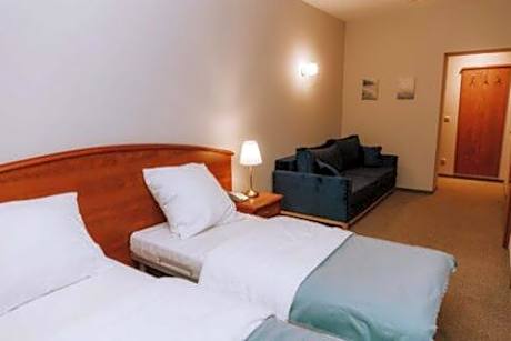 The triple room includes a private bathroom equipped with a shower. The spacious triple room provides a wardrobe, a sofa, a carpeted floor, heating, as well as a flat-screen TV with satellite channels. The unit offers 4 beds.