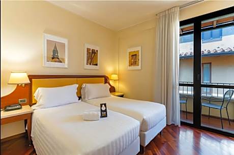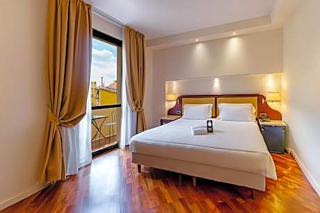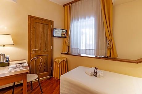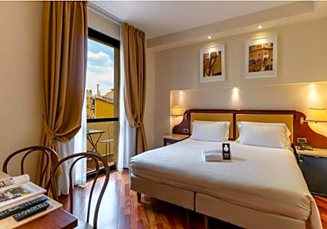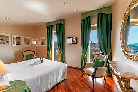Set in the 13th-century Rossi Tower next to Ponte Vecchio, Hotel Pitti Palace features a panoramic roof terrace with beautiful city views. It offers free Wi-Fi. The Uffizi Gallery is a 5-minute walk from the hotel. Florence Cathedral is 1640 feet away, while Santa Maria Novella Railway Station is 0.6 mi away. The rooms at B&B Hotel Firenze Pitti Palace al Ponte Vecchio include windows overlooking the Arno River or the surrounding medieval city area. Alla Torre De’ Rossi restaurant serves local cuisine and is on the top floor with a panoramic terrace.
