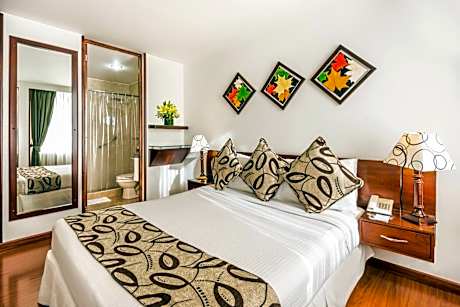 Only a 15-minute drive from Bogota’s city center, Hotel Platinum Suite offers rooms with free WiFi and plasma TVs. It features a restaurant and a rooftop terrace overlooking the city. Breakfast and free parking are provided. Rooms at Platinum Suite are decorated with parquet floors and wooden furnishing. All of them are fitted with mini-bars, and feature private bathrooms with hot running water. A buffet breakfast with fresh juices and fruits is served daily. Local and international dishes can be ordered at the restaurant. Guests can relax on the shaded deck featured on the terrace, which affords panoramic views of the city. Hotel Platinum Suite is a 5-minute walk from Corferias and a 40-minutes drive from Park 93, where upscale bars and restaurants can be found. El Dorado Airport is 20 minutes away by car.