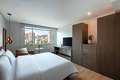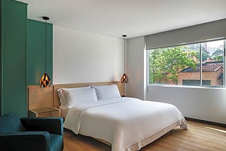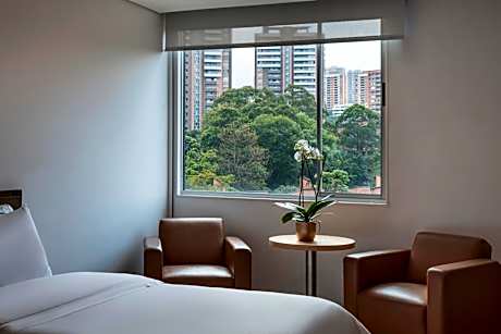 El Hotel Poblado Alejandría ofrece alojamiento elegante en El Poblado, a 5 minutos a pie del centro comercial Oviedo. El hotel cuenta con un spa con baño de vapor, servicio de habitaciones las 24 horas y conexión Wi-Fi gratuita. Las habitaciones del Hotel Poblado Alejandría tienen suelos de parqué y están decoradas en colores vivos con acabados de madera pulida. Las comodidades incluyen aire acondicionado, TV por cable y minibar. El desayuno se puede servir en el jardín a la sombra o en la terraza solárium, con vistas panorámicas a Medellín. El Hotel Poblado Alejandría también ofrece un gimnasio y servicio de cambio de divisas. El hotel está a solo 10 minutos en coche del aeropuerto Olaya Herrera.